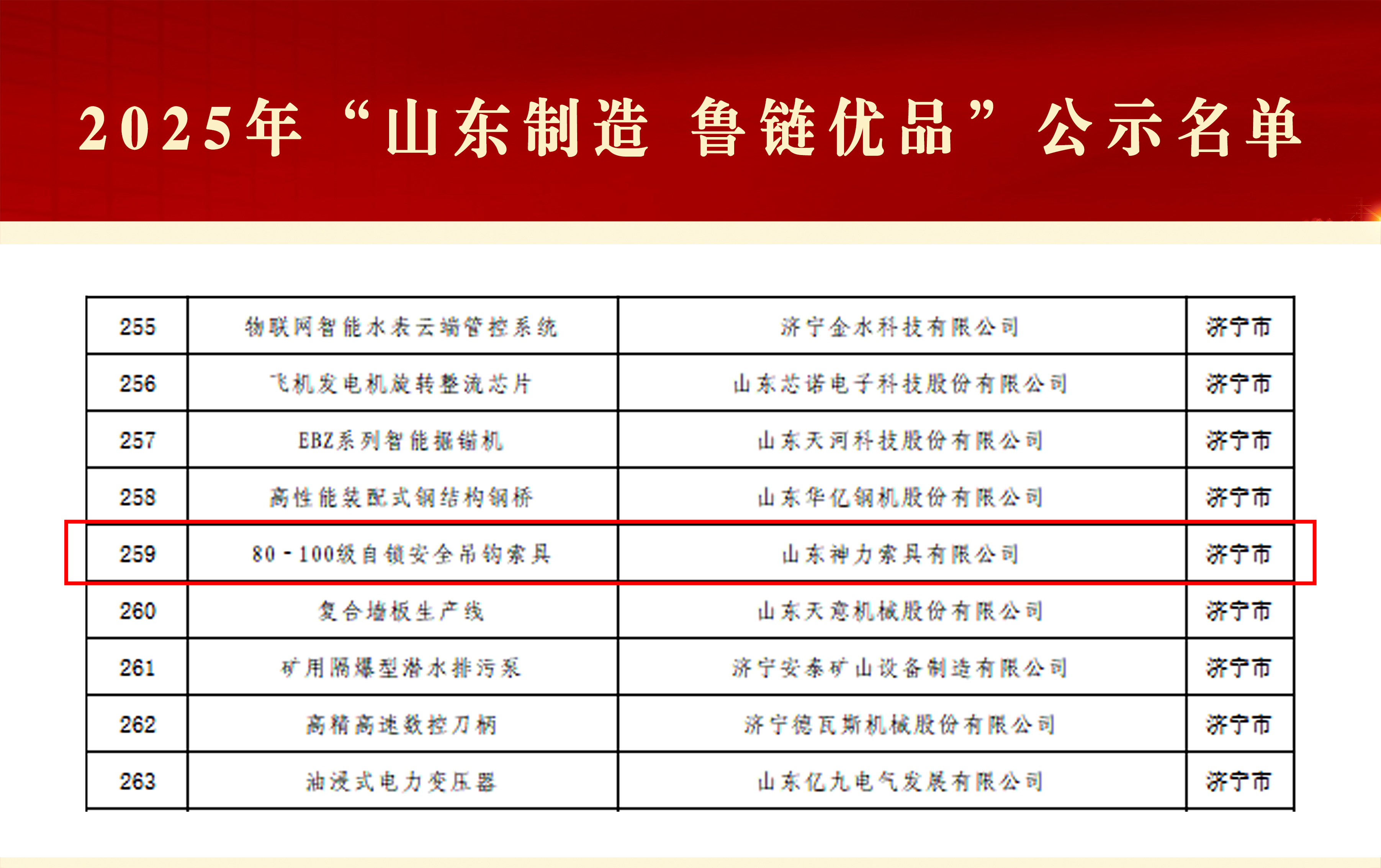 神力索具榮登2025年“山東制造 魯鏈優品”首批名單