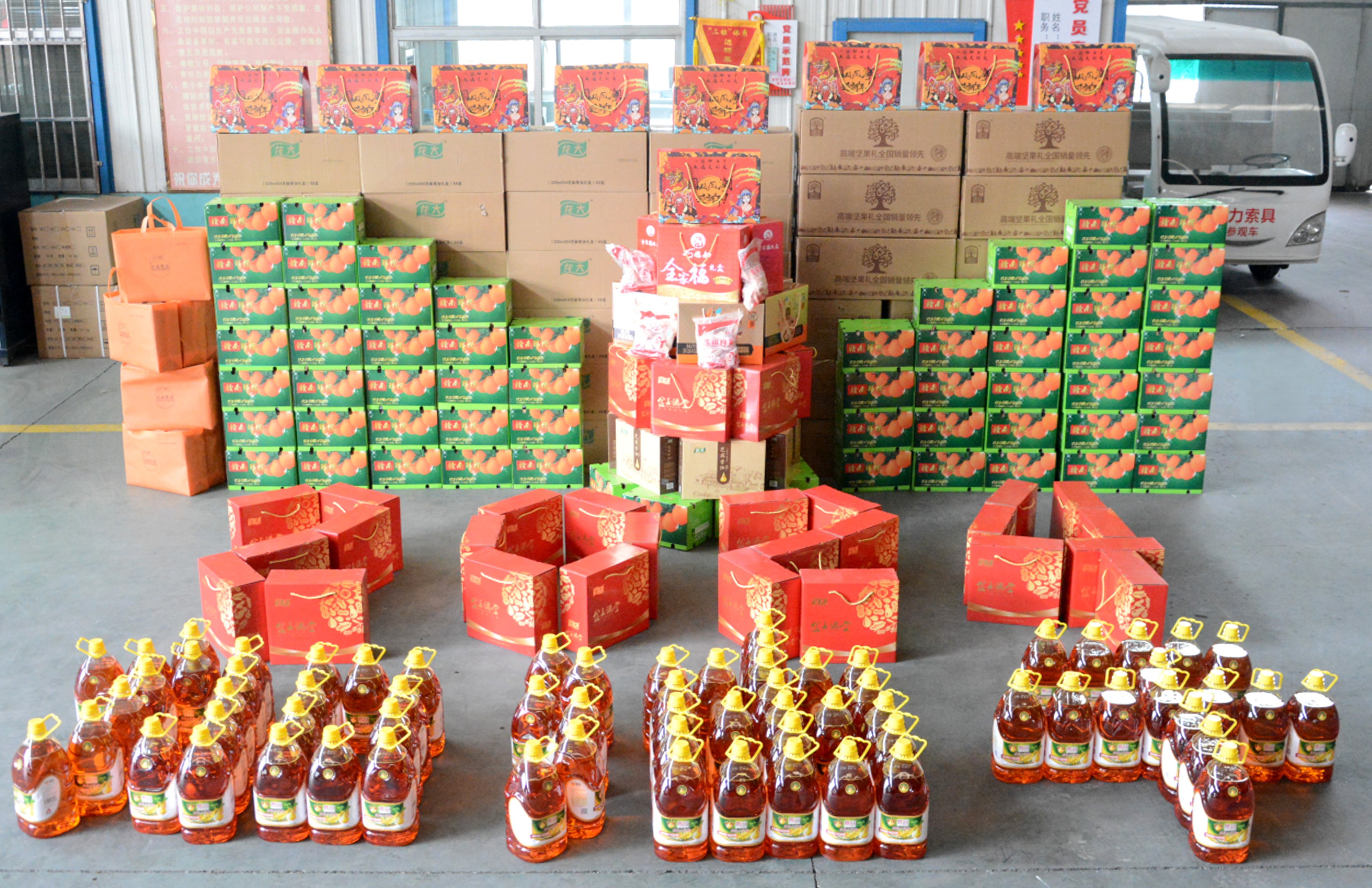 春節前夕,公司董事長杜亞中及總經理杜大平特別挑選了神力迎春大禮包、龍大芝麻香油、贛南鮮橙、嘉冠豆油、雞翅中、利生雪花面粉、臻味堅果禮盒、龍大禮盒、石磨面粉、巧媳婦調味禮盒等共計10種內容豐富、心意滿滿的新春節禮,為每一位職工送上最誠摯、最“接地氣”的新春祝福。