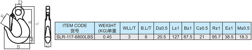 SLR117 合金鋼含舌眼型大開口鉤