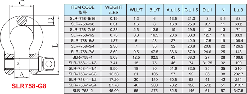SLR758 8級螺絲銷合金鋼弓型卸扣
